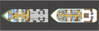 • Nine large air-conditioned cabins, en suite bathrooms with shampoo, shower gels and hot water. All rooms have individual controls for your air-conditioning unit.